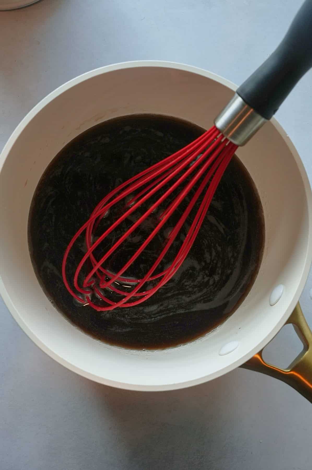 - In a small pot over medium heat, whisk together water and brown sugar and allow the mixture to come to a gentle boil. Stir continuously to prevent the sugar from burning and sticking to the bottom of the pan.