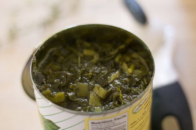 I haven't been able to find fresh callaloo in the grocery stores in my area but the canned callaloo works just fine. It actually cuts down on cooking time and comes pre-chopped. Less work for me.