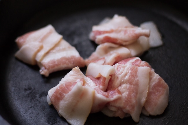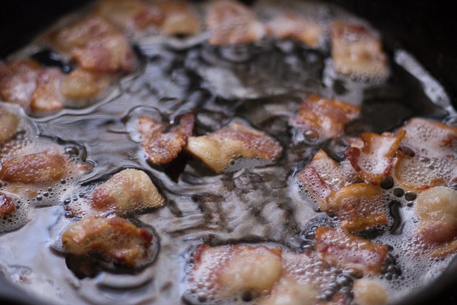 - Soak salted fish in water overnight. Next, heat salted fish in water on stove until water boils. You should see a foam on top. Remove from heat and drain. Set aside and shred salted fish once it cools.Cook bacon in skillet over medium heat until crispy. Remove bacon from heat and drain the majority of the bacon grease, leaving about 1 tablespoon in the skillet. Add yellow onion, green onion, scotch bonnet pepper, and garlic to the skillet and stir. Cook for about 2 minutes or until onions soften. Add salted fish to skillet and stir. Cook for about a minute. Next, add callaloo, roma tomatoes, thyme, and black pepper. Stir to combine and cook until heated through, about 2 minutes.Enjoy 🙂