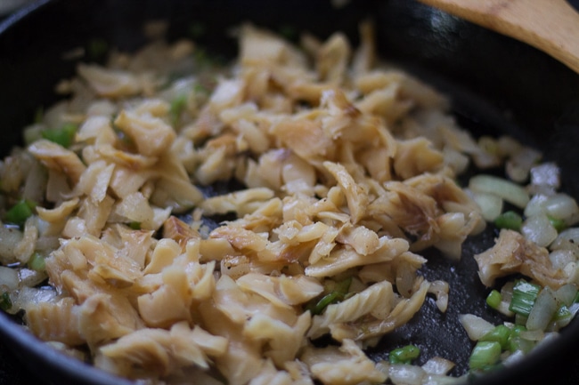 - Make sure your saltfish is boneless. Check and make sure there are no bones present when shredding the saltfish.