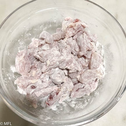 There are a few tips and tricks to make this recipe a success. For one, you will want to coat your chicken pieces in potato starch. It's a tip I picked up from This Old Gal. It provides the perfect crunch for the chicken pieces without changing the taste profile.