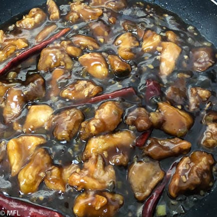 Initially, my general process when creating general Tso's chicken was to batter and fry the chicken pieces until crunchy and then coat them in my sauce.