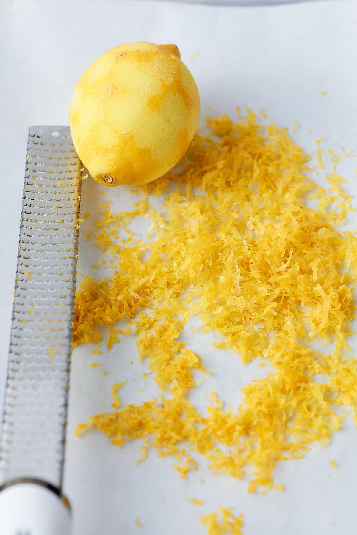 - Be careful not to grate the lemon down too much. The white lemon pith tends to be quite bitter, so you just want the top yellow skin.