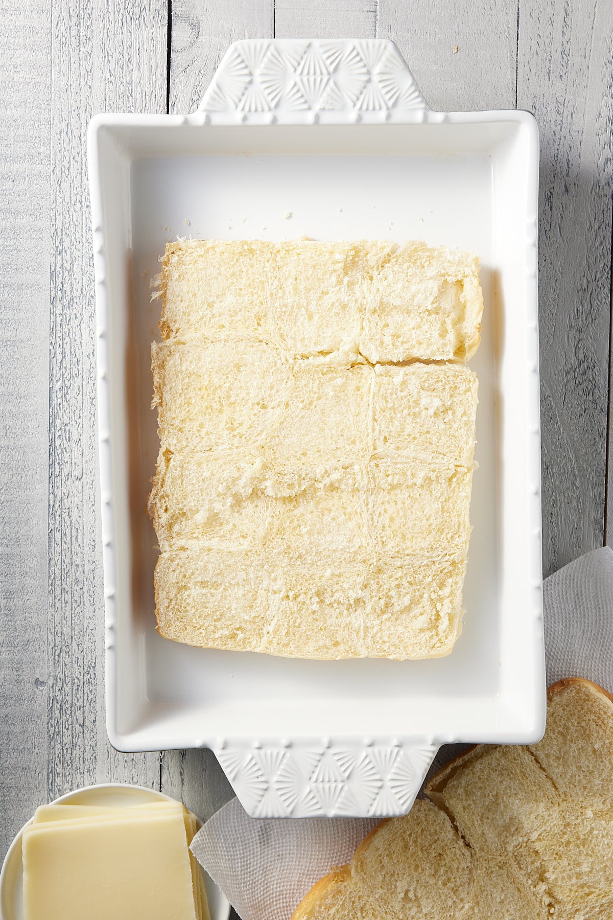 - Take rolls and use a bread knife to slice the rolls in half, separating the tops from the bottoms. Place the bottom layer of rolls in the prepared baking dish.